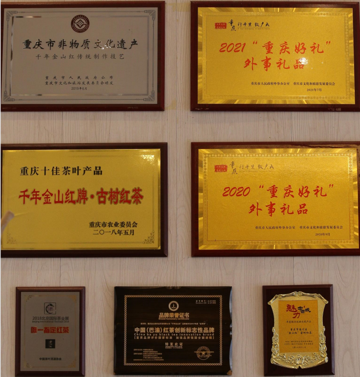 高端红茶品牌千年金山红,作为重庆少有的古树红茶产品,致力于不断提高红茶新高度,打造重庆地域新标签,千年金山红品牌采用“直营+加盟”,“线上+线下”的销售体系实现快速扩张,2021年至今拥有加盟店数量30余家。公司直营店3家。线上头部平台开店合作8家。各企事业定点采购单位约600余家。2023年4月,中新互联互通重点项目签约,金山湖农业开发有限公司与新加坡福善德公司签定合作协议,同年4月16日,金山湖农业公司与美国七碗茶公司签订共塑国际品牌古树茶合作协议,千年金山红古树红茶走向国际舞台。