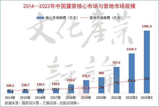 根据劲旅咨询发布的《2022中国文旅露营产业融合发展研究报告》,预计今年,中国露营市场总规模预计可达1781.4亿元,约为2019年的9倍。其中,露营营地市场规模将达到417.0亿元。另据艾媒咨询预估,2025年中国露营经济核心市场规模将上升至2483.2亿元,带动市场规模将攀升至14402.8亿元,并呈总体稳定的发展态势。