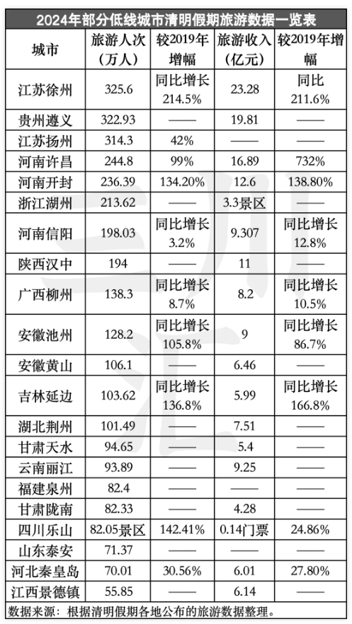春风吹得游人醉,十里小城十里人。今年清明节假期,国内旅游市场呈现出一派繁荣景象,除了传统热门旅游城市继续吸引大量游客外,一批“小城”也悄然崭露头角,成为旅游市场的新宠。据文旅部数据显示,清明假期游客量增幅超过50%的目的地城市包括泰安、淄博、天水、开封、景德镇,这些城市凭借独特的文旅资源吸引了众多游客的目光。